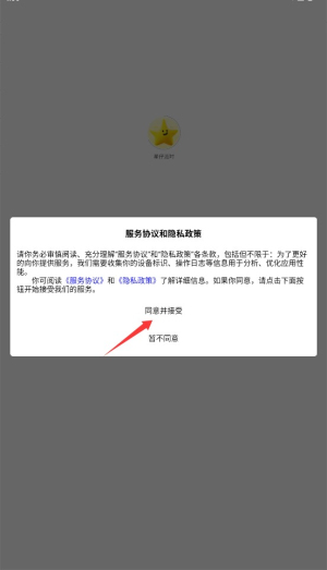 1、初次启动应用时,需阅读并同意用户服务协议及隐私条款,点击确认后进入主界面。