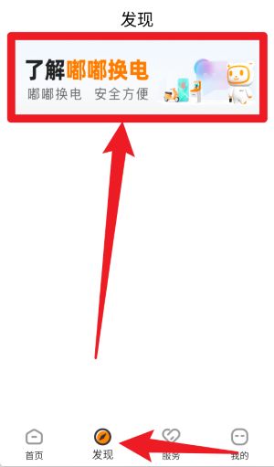 3、点击底部导航栏中的“发现”标签,可以进入平台介绍页面,了解嘟嘟换电的使用优势与服务内容。