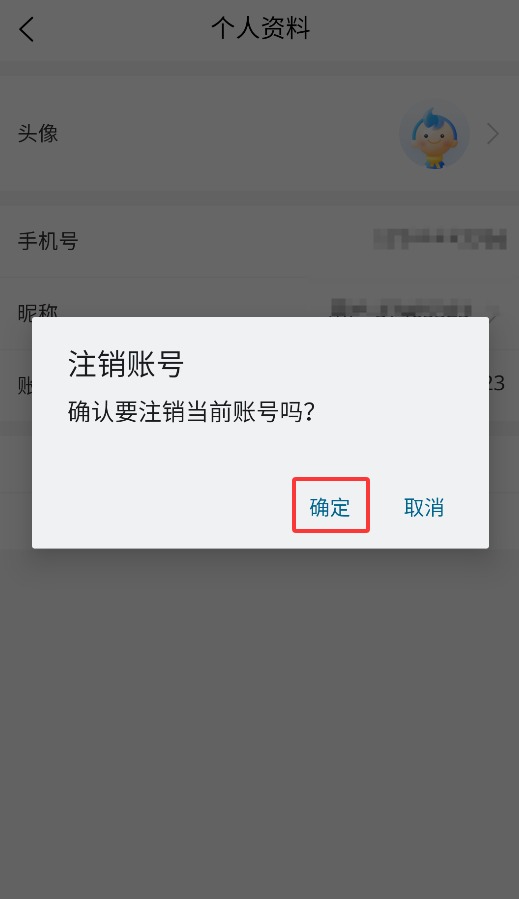 4、系统弹出二次确认弹窗后,点击确认即可完成账号注销操作。