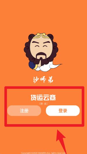 2、点击欢迎页中的“注册”或“登录”按钮,选择身份为货主后完成手机号注册,即可进入主功能页面。