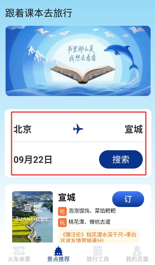 1、查询页面输入出发地、目的地及日期(支持模糊搜索如“北京→上海”),显示所有车次(G/D/C/K/T)、耗时、余票(图形化柱状图)及价格波动(近30天趋势),收藏心仪车次。