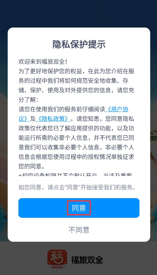 1、首次启动应用时,请点击弹窗中的“同意”选项,方可进入主界面开始使用。