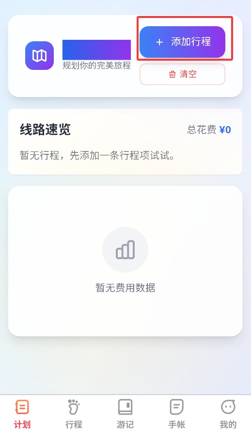 2、在计划板块,可点击添加行程规划旅程,并查看线路速览与推荐路线。