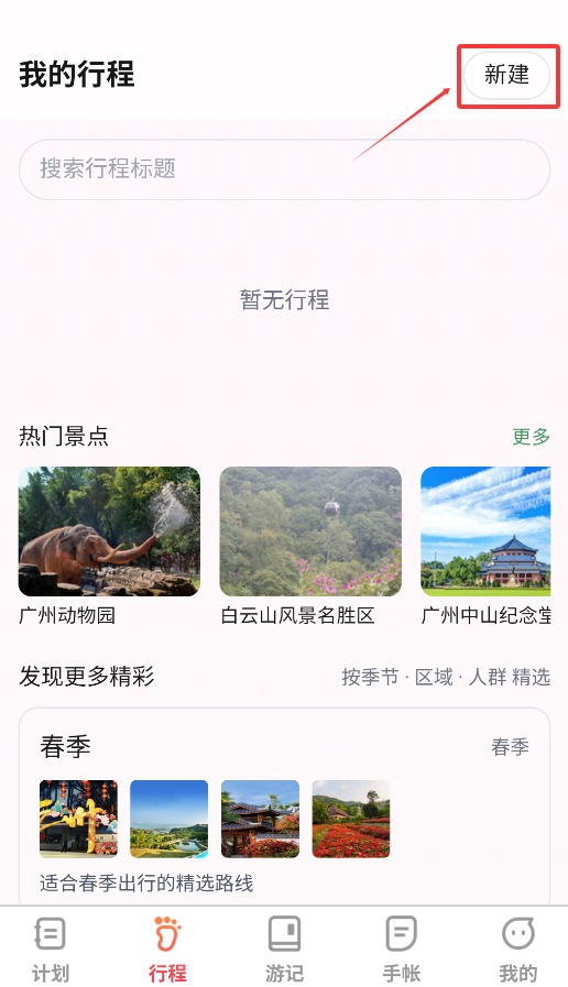 3、通过行程管理功能,点击右上角新建按钮即可创建个性化行程安排。