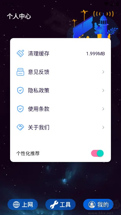 2.进入个人中心可提交使用反馈并完成缓存清理