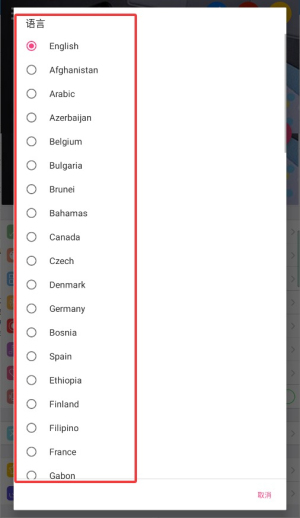 4、从语言列表选取需要的语种,系统将自动切换至对应语言的显示界面。