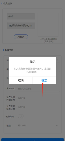 3、系统将自动检测社保卡状态,未申领用户可直接确认办理,已持卡用户需先办理挂失。