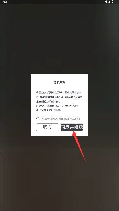 1、首次使用需阅读用户协议和隐私政策,确认无误后点击同意并继续按钮进入。