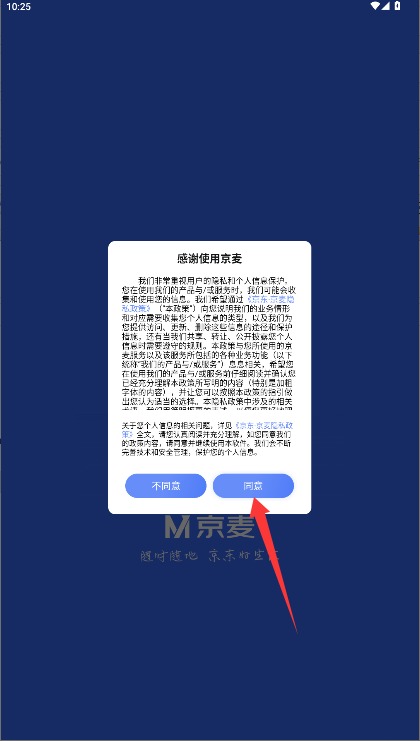 1、首次使用需阅读用户协议和隐私政策,确认无误后点击同意按钮进入登录界面。