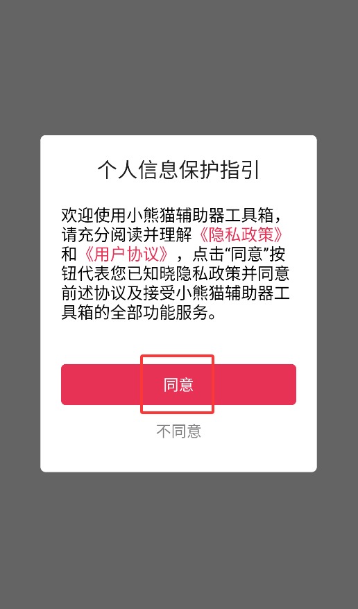 1、首次启动APP时需点击同意用户协议弹窗,方可进入主界面开始使用。