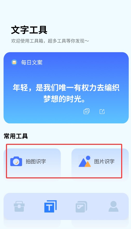 3、文字工具支持拍图识字与图片转文字功能,快速提取并编辑文本内容。