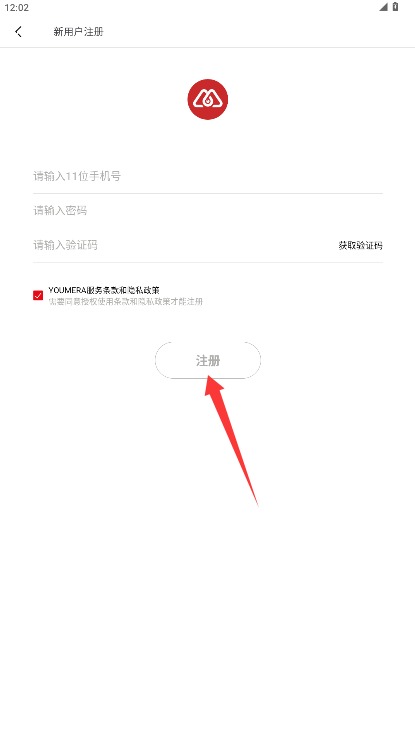 2、输入手机号并设置账户密码,填写收到的短信验证码后点击完成注册。