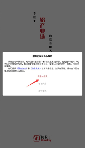 1、初次启动应用时,需阅读并同意用户服务协议及隐私条款,点击确认后进入主界面。