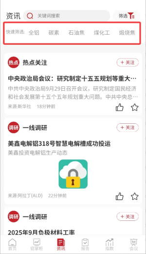 1、行业资源丰富多样全面专业化,平台专注铝产业链领域,提供市场分析、行业动态、研究报告、现场咨询等十大专业模块。