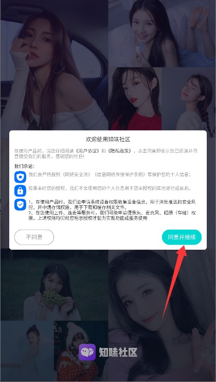 1、首次使用需阅读用户协议和隐私政策,确认无误后点击同意并继续按钮进入。
