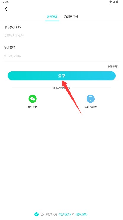 2、进入登录界面输入手机号和密码完成登录,或直接选择微信授权登录方式。