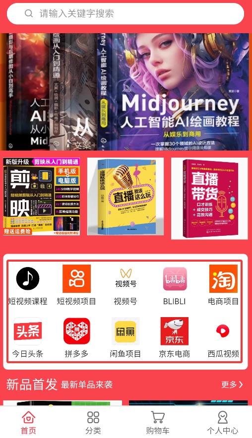 2、首页提供短视频课程、视频号运营及电商项目等热门内容入口。