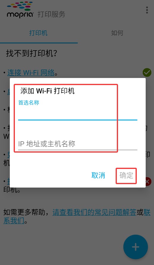 3、通过输入首选名称及IP地址或主机名称,可快速添加指定Wi-Fi网络内的打印机。
