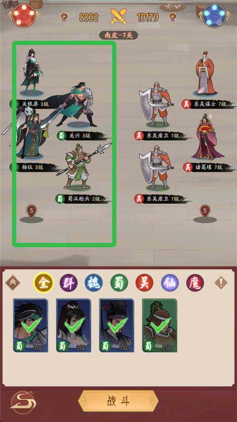 3、开战前可通过拖拽武将图标,在布阵界面自由调整队伍的出战阵型与站位。