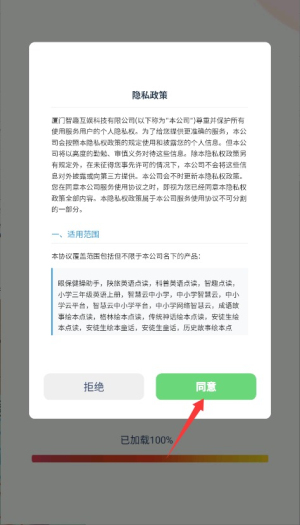 1、首次启动应用时,系统会显示用户协议和隐私政策,阅读后点击同意按钮进入主界面。