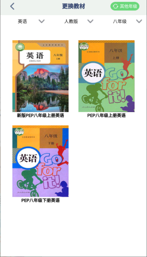 3、从教材列表中选择需要使用的八年级上册英语人教版电子课本。