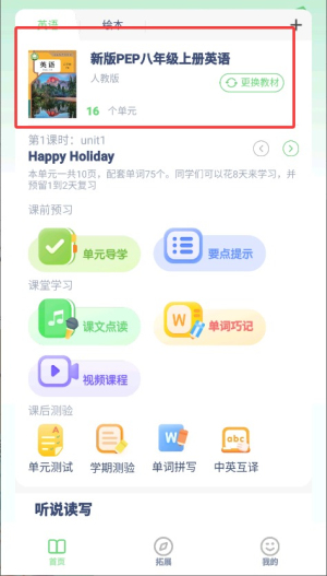 4、点击确认后即可完成教材切换,系统将自动加载对应的点读学习内容。