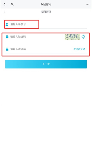 3、输入注册手机号并获取短信验证码,通过验证后即可设置新密码。