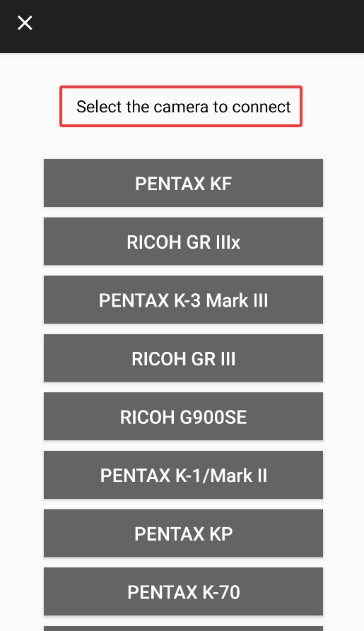 3、根据相机型号选择对应设备,按照提示完成配对与连接流程。