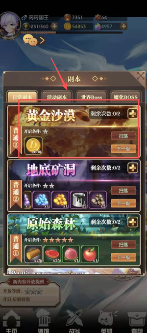 6、所有的养成材料在冒险模式中能够获得,就是要你不断的去挑战。