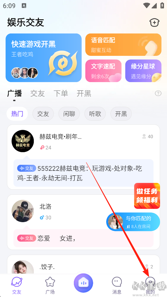 2、交友广场,约聊入口