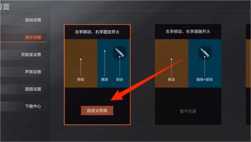 2、点选首行的“自定义布局”功能,将原本位于右上角的设置按钮移动至屏幕中央,并自由调整其尺寸与透明度。