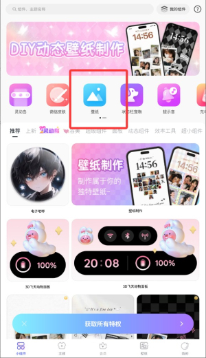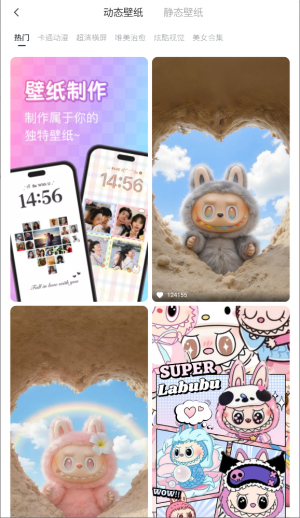 2、在主页面选择"壁纸"功能入口,浏览各类个性化壁纸资源分类列表。