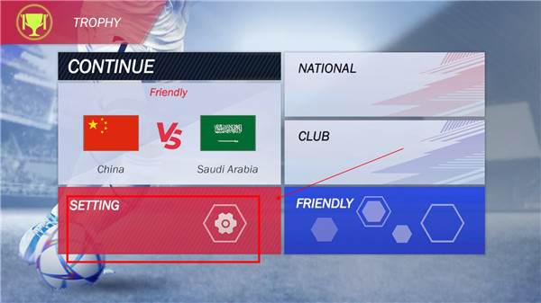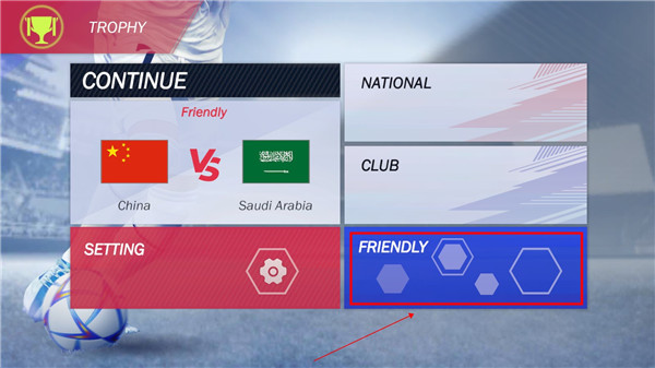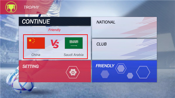 1、进入游戏后,友谊赛可以自己更换队伍,不同的队伍所带来的球员也是不同的。详细参数可以在设置里修改
