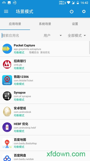场景模式 用户通过对每个应用进行设置,可达到根据应用调整Soc性能、屏幕亮度等目的。
