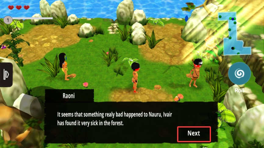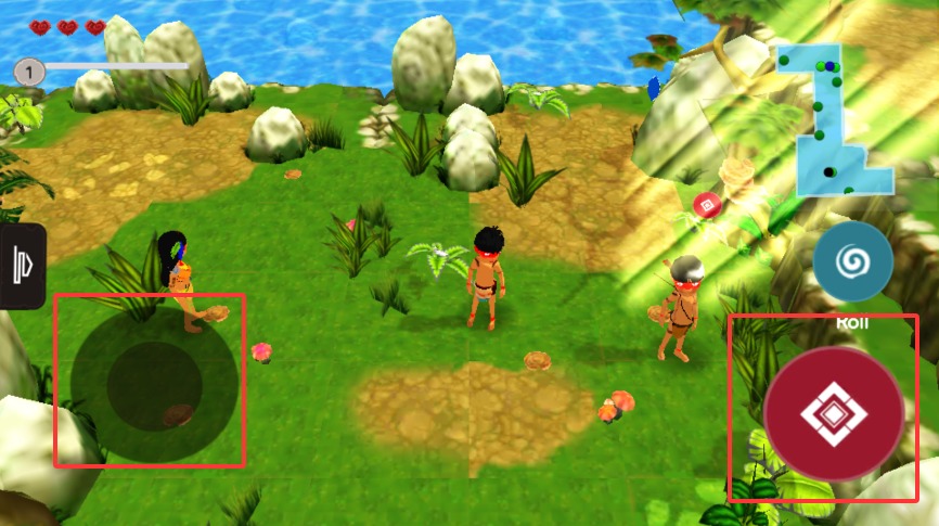 3、使用左侧虚拟摇杆控制角色移动,右侧交互按钮可实现采集与探索功能。