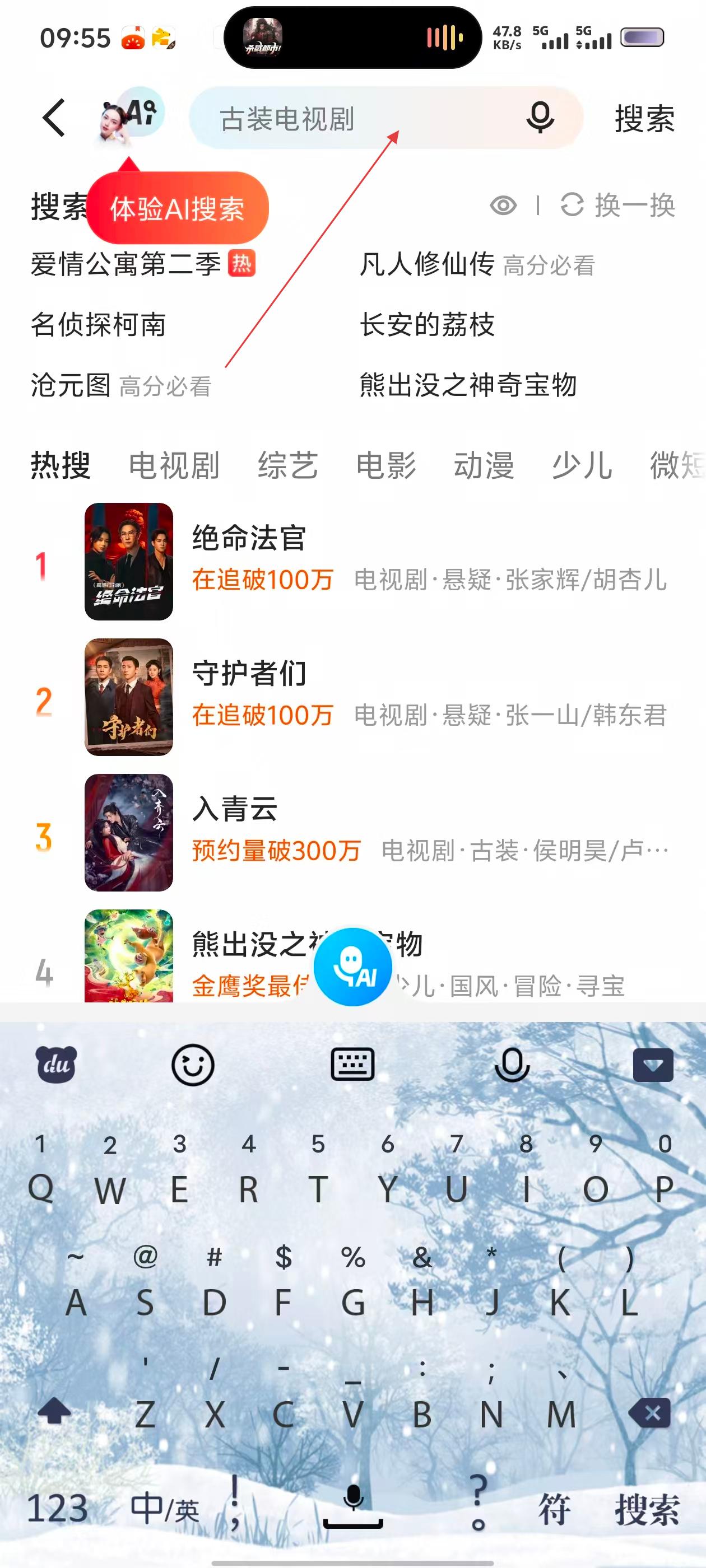 2、在搜索页面,有热搜榜单,在搜索框输入【沧元图】,查看相关搜索结果。