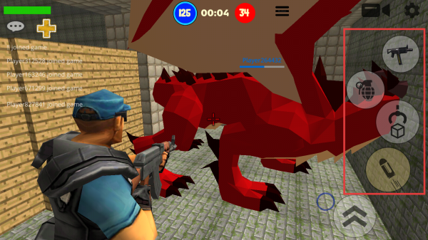 2、在战斗中,点击右方按键可以切换武器、扔手榴弹、拾取物品、攻击。