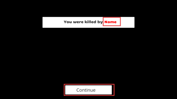 3、阵亡后,屏幕上方会显示击杀者昵称,点击【Continue】进行下一场战斗。