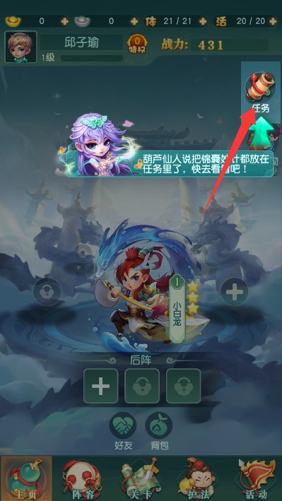 1、启动游戏后点击任务列表,查看当前可接取的主线剧情与日常活动内容。