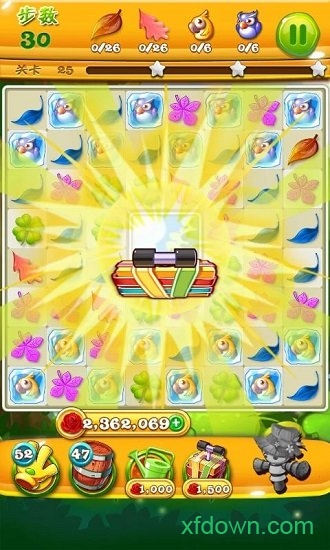 这是一款可爱的花朵主题的消除游戏,游戏卡通形象,非常适合休闲和小孩子使用,想要放松,或者没时间带孩子的话不妨来一发吧。游戏规则简单,需要三朵或三朵以上相同花朵连在一起才会消除,4个以上的相同花朵消除后会变成各种炸弹,消除炸弹或交换炸弹,会获得威力更大的消除效果。