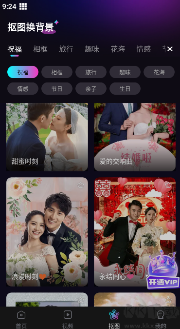 3、抠图功能中提供不少背景素材与精美相框,你可以用它们为照片装裱,给图片增添精致感,成为精致酷孩 er。