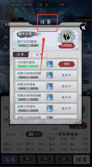 1、通过任务界面接取各类委托,从除妖卫道到采集仙草,完成目标可获得修为奖励与稀有材料。主线剧情贯穿修真历程,支线任务丰富世界观察。