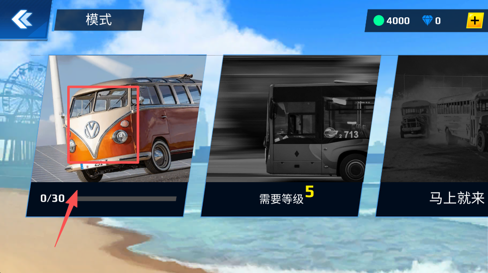 2、在模式选择界面,点击解锁的车辆开始游戏。