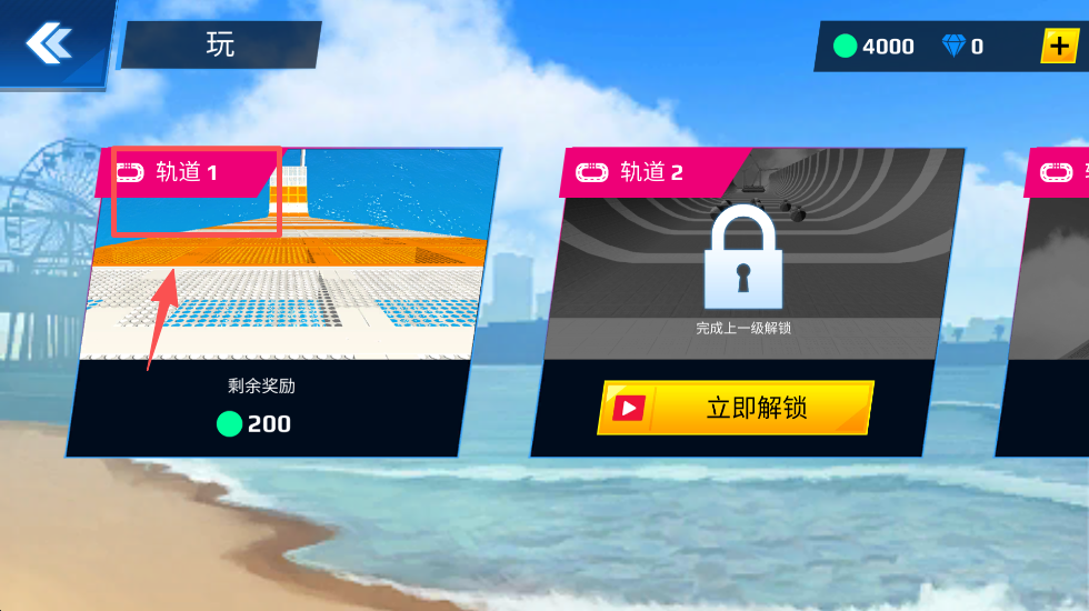 3、选择轨道开始游戏,完成当前等级后可解锁下一个轨道。