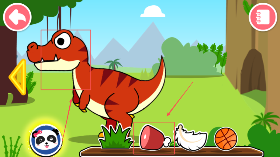 2、喂养环节要选择正确食物,了解食草恐龙和食肉恐龙的区别,培养分类和辨识能力提升认知水平。