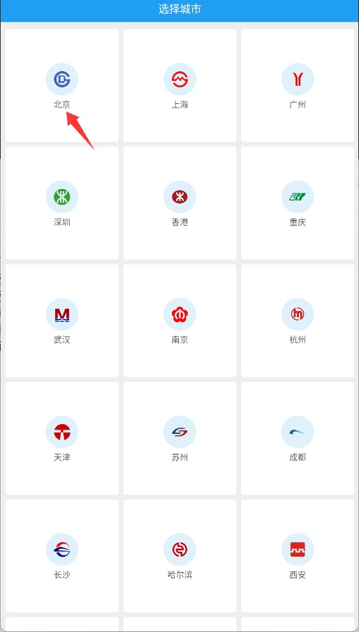 1、打开应用后,首先在支持的城市列表中选择您当前所在的城市位置。