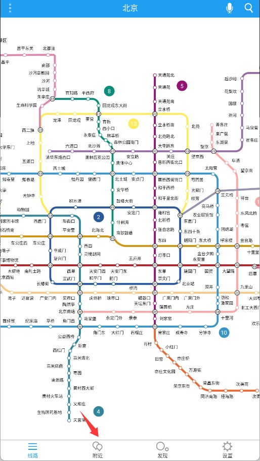 2、进入主功能界面后,点击下方导航栏中的“附近”选项继续操作。