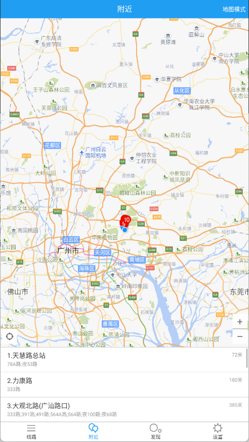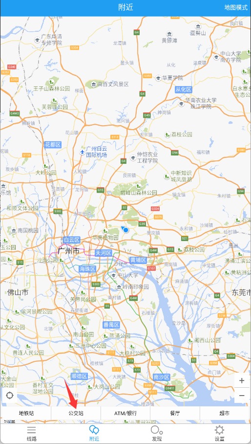 4、系统将自动定位并展示您周边所有的公交站点信息与实时位置。