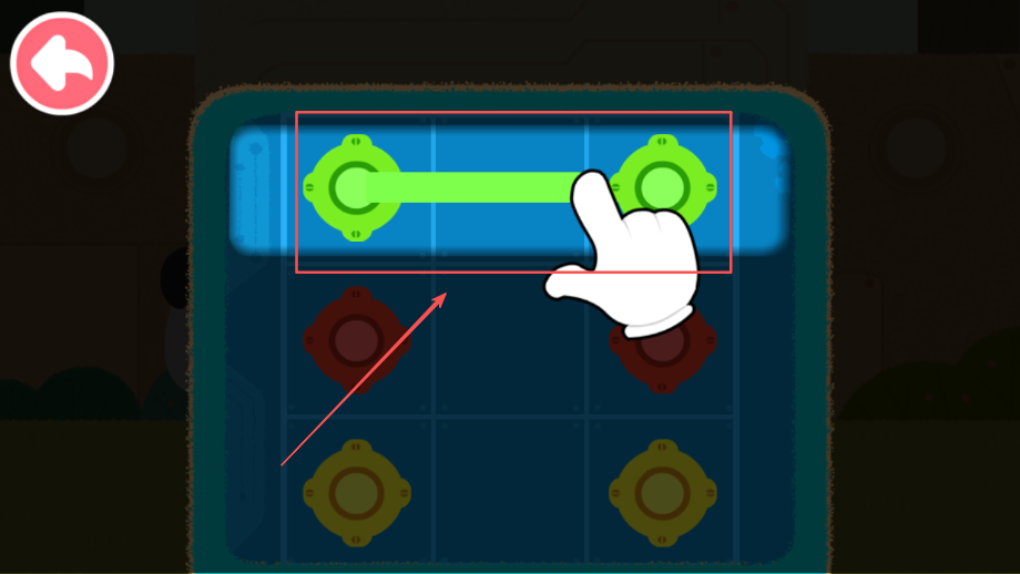 1、帮助奇奇寻找失落的飞机零件,在森林中连接同色圆点解开石门谜题。
