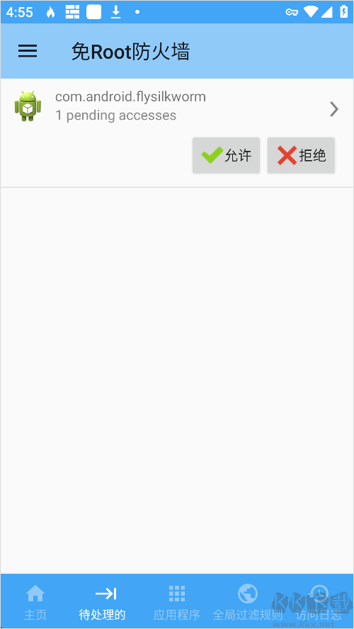 3、在“待处理访问”列表中,就能看到当前请求网络权限的应用,根据需要选择允许或拒绝即可。